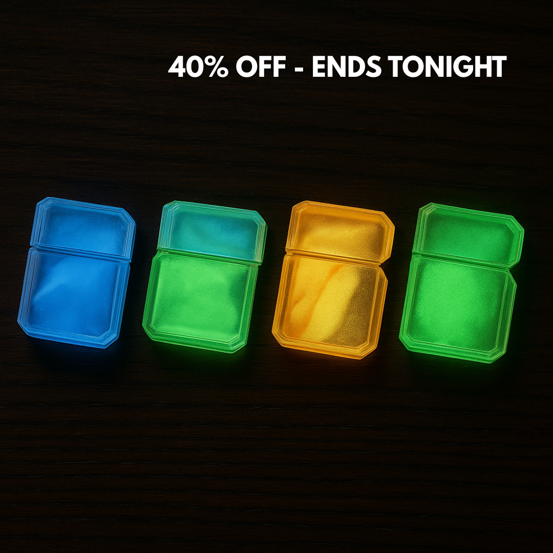 Absorbs any light and radiates for hours — no batteries, no gimmicks.